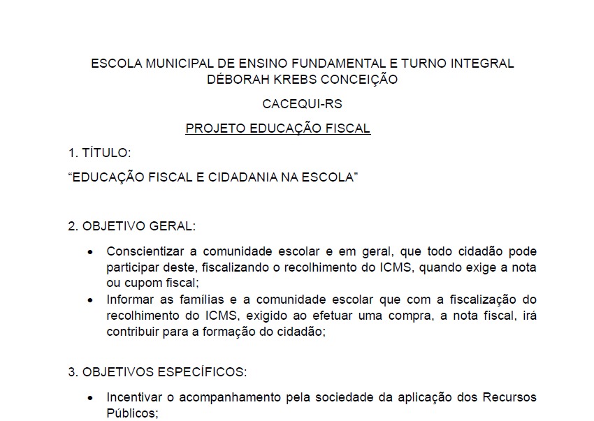 A Educação Fiscal tem por missão "Conscientizar a sociedade, através da escola da função socioeconômica do tributo. Além disso, busca o despertar do cidadão para acompanhar a aplicação dos recursos postos à disposição da Administração Pública, tendo em vista o benefício de toda a população".