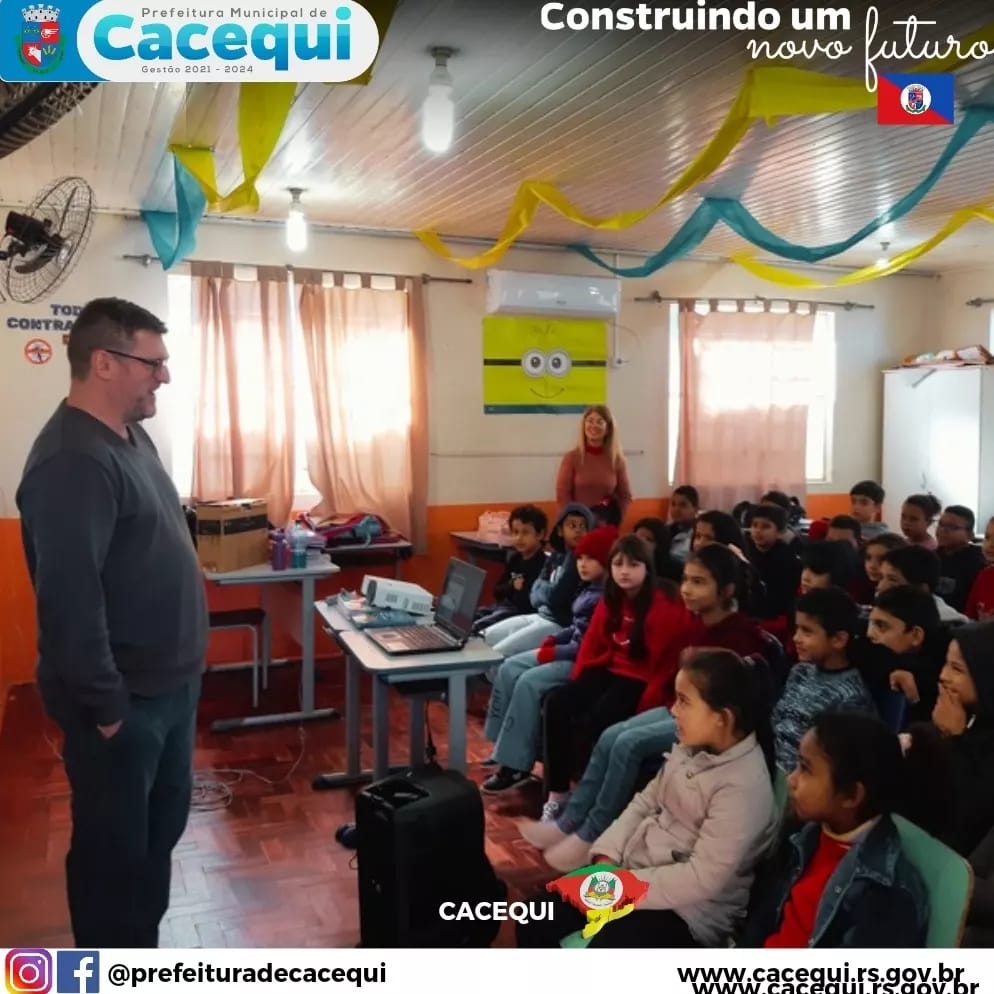 💰A Educação Fiscal é tema de palestras na rede escolar de Cacequi, um trabalho de conscientização que vem sendo realizado pelo município, não só nas salas de aula, mas levando informações para toda a comunidade.