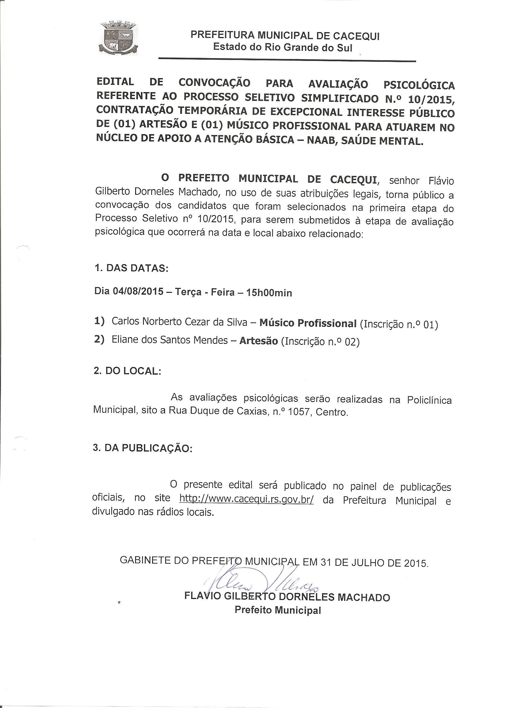 Processo Seletivo n° 10 / 2015 |