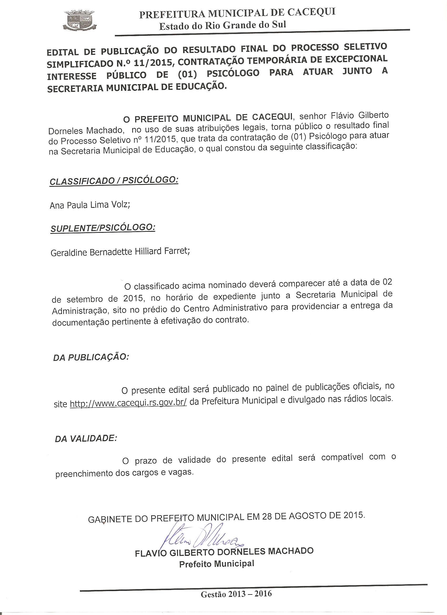 Processo Seletivo n° 11 / 2015 |