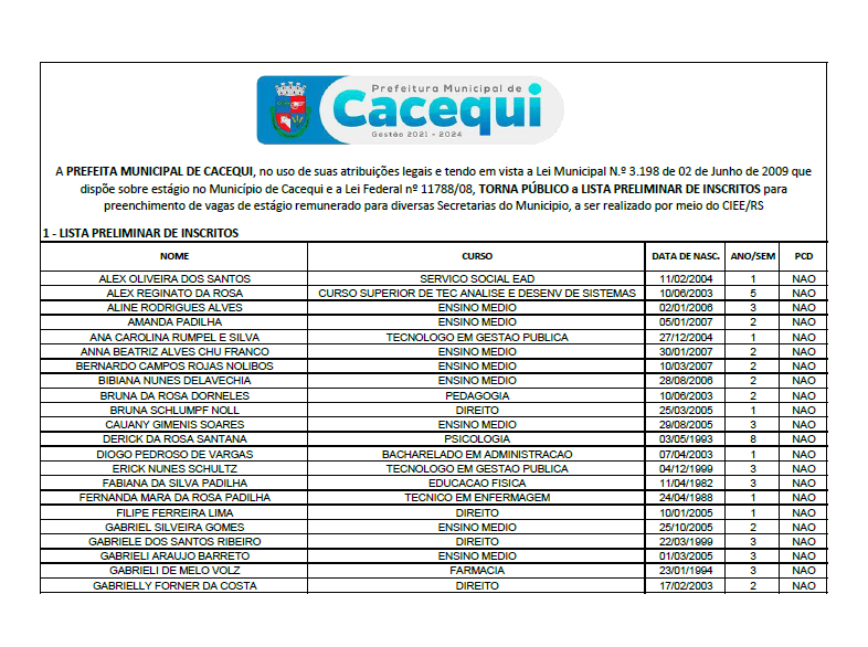 O Conselho Municipal dos Direitos da criança e do Adolescente de Cacequi/RS no uso de suas atribuições, considerando o disposto no art. 132 e 139 da Lei Federal nº 8.069/19...