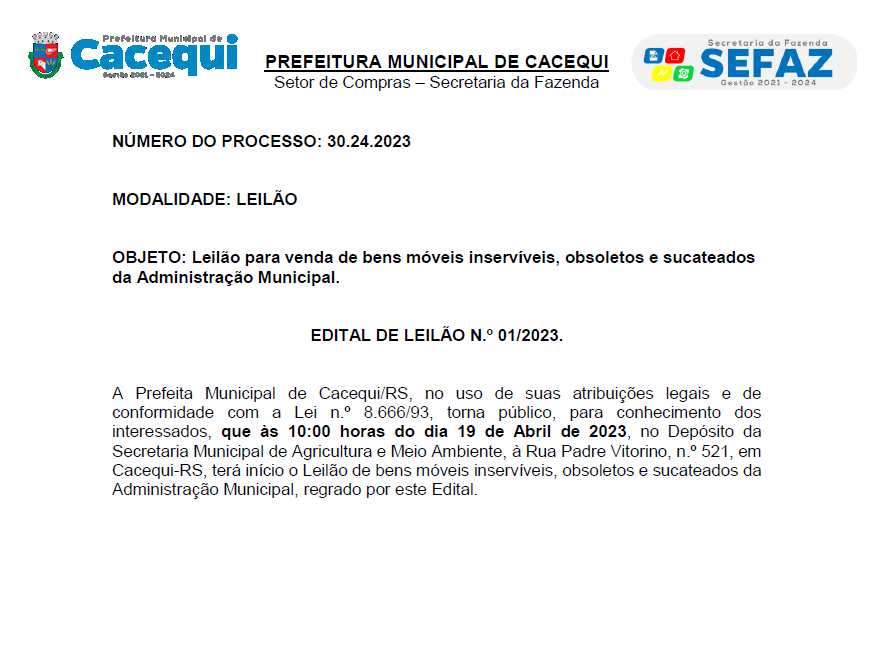 Edital nº 003/2023 COMDICA – Cacequi/RS